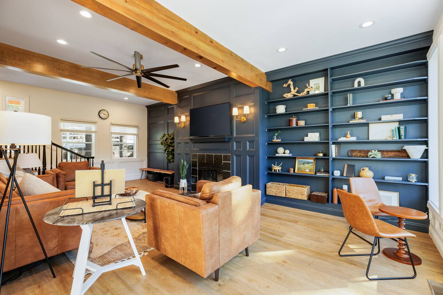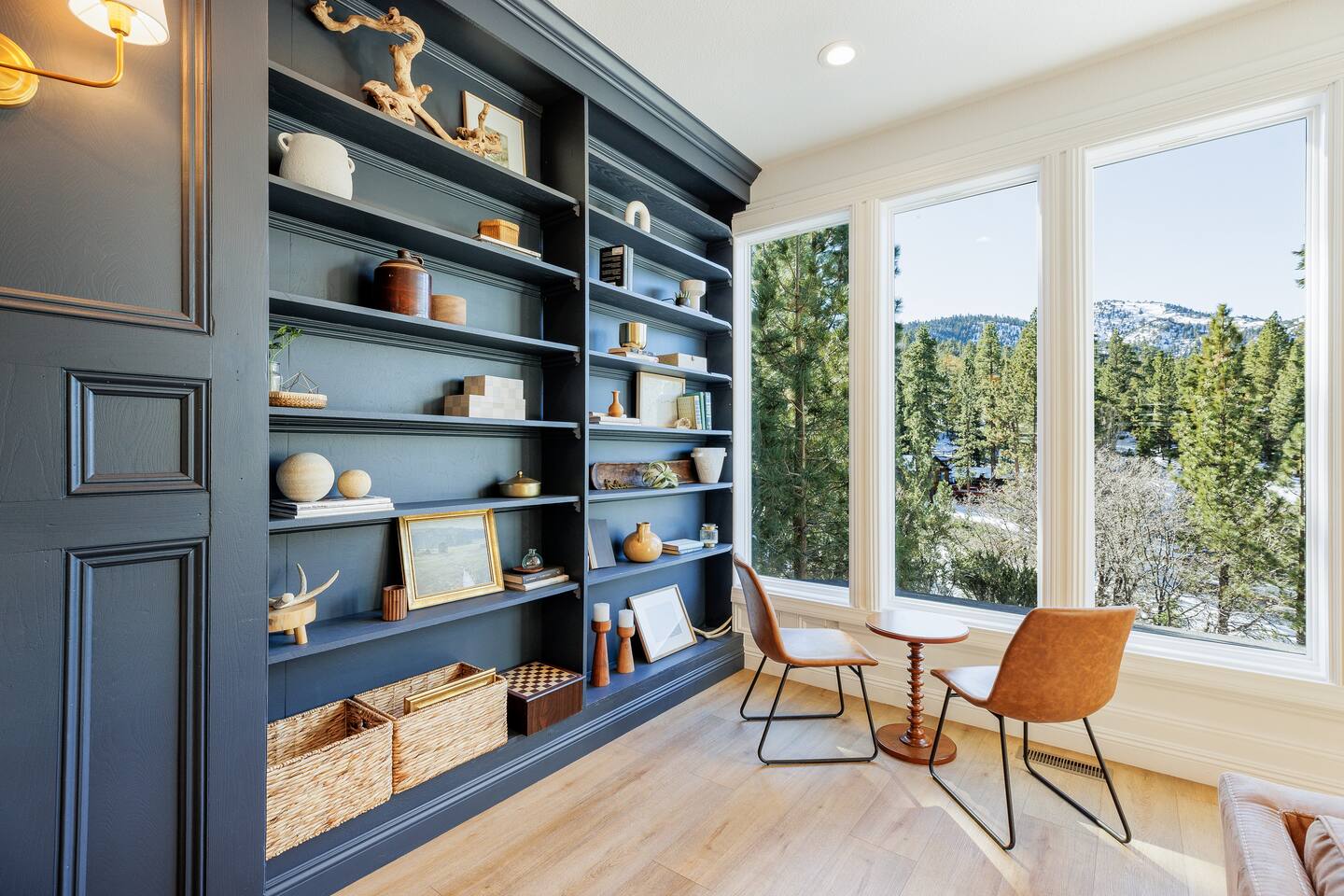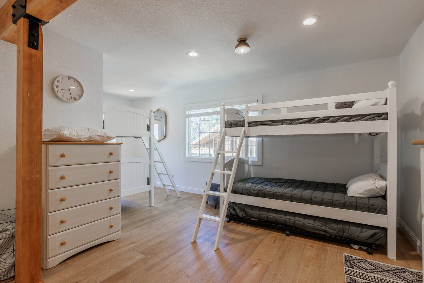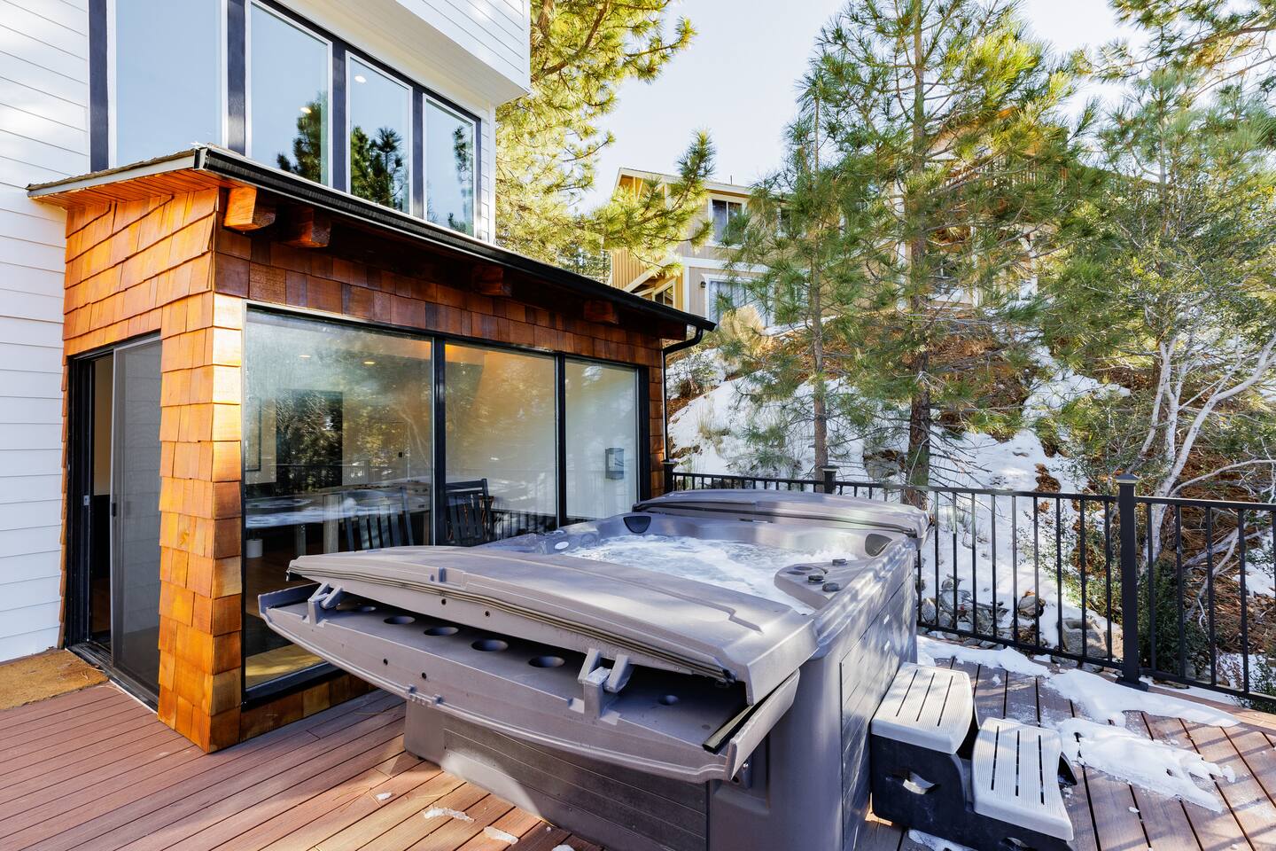Renovated March 2022 - new furnishings! Close to Big Bear Mountain Resort. This is a 4000 sq foot home and has 3 levels, 5 bedrooms, 4 full baths with an additional half bath, full kitchen, library, entertainment room, pool table, sauna, spa, multiple decks, bbq. This home is unique and charming and you can enjoy breathtaking views around the entire home.